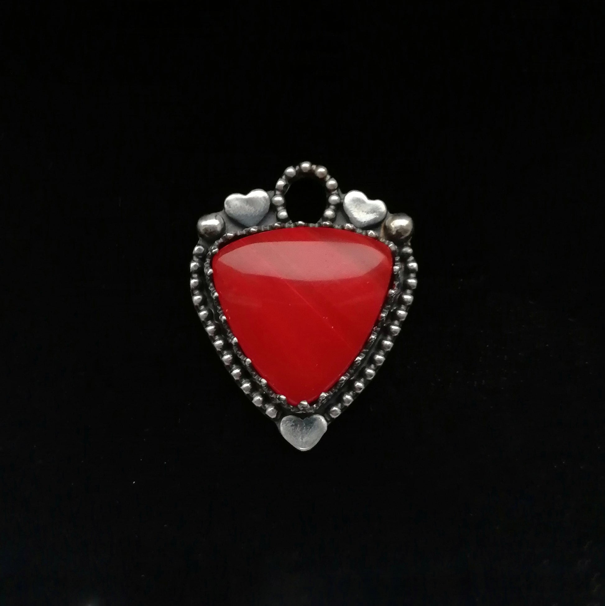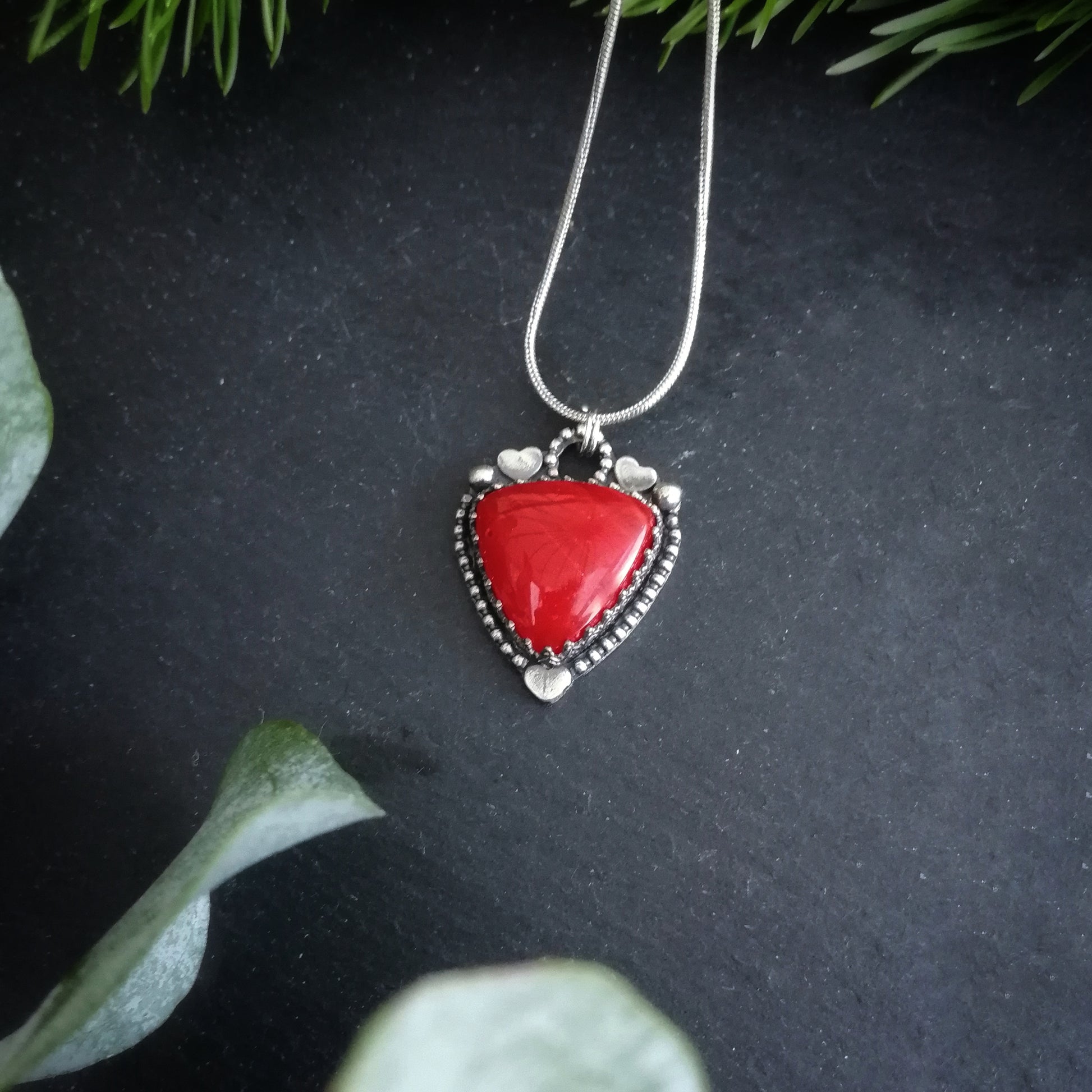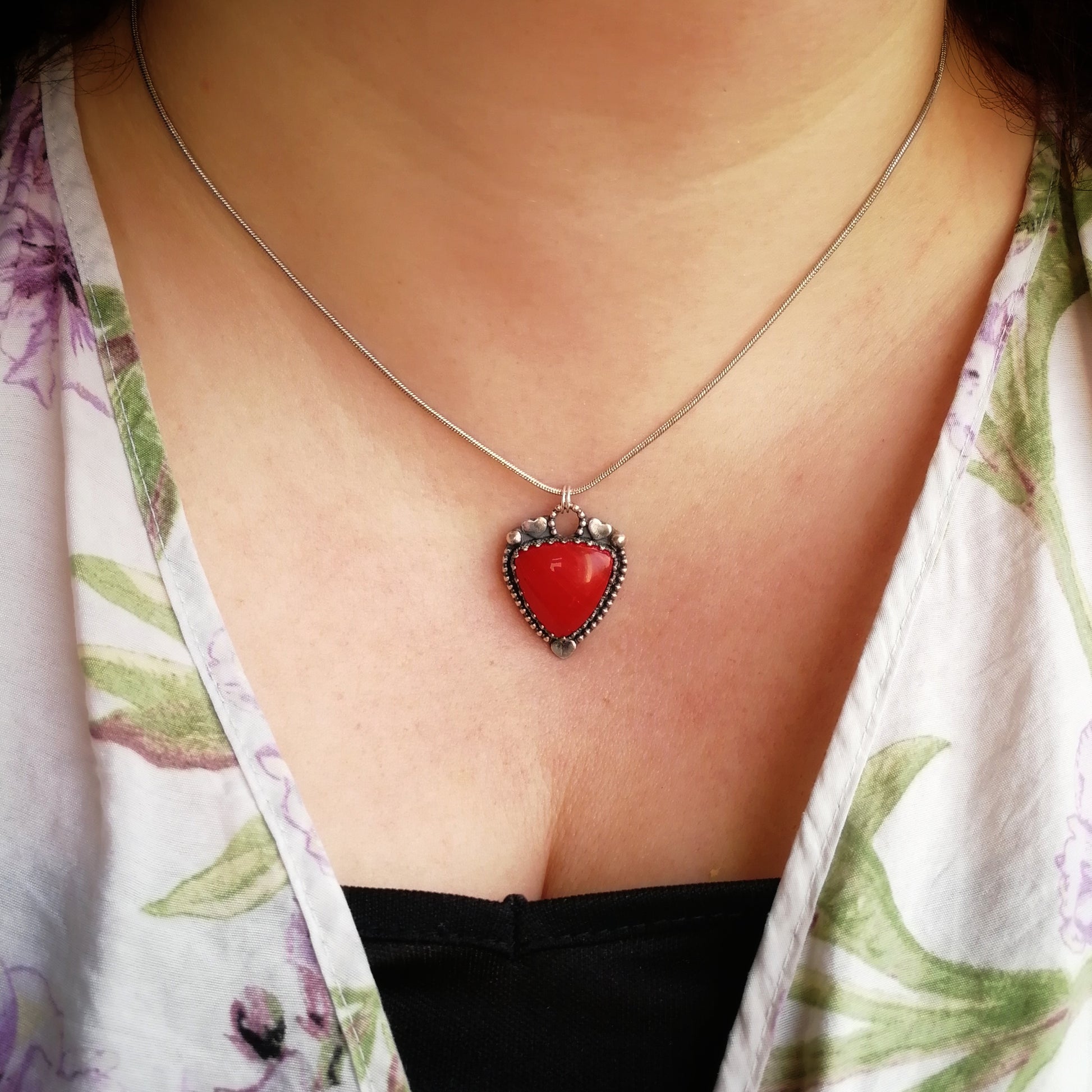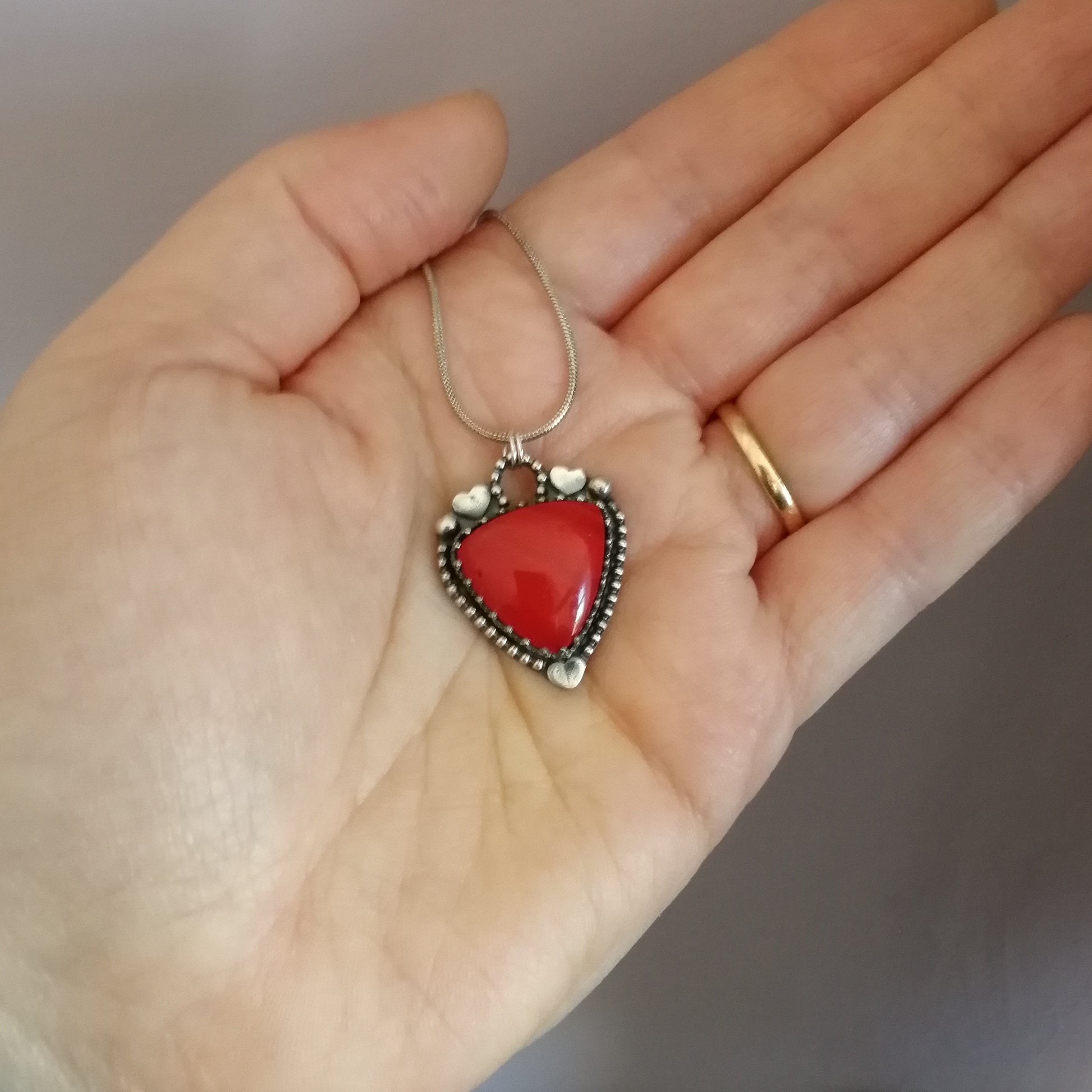 I have set it with sterling silver sheet, beaded wire and hand carved sterling hearts in my tiny home studio under the stairs. Perfect for anyone who loves statement jewellery that pops with colour.