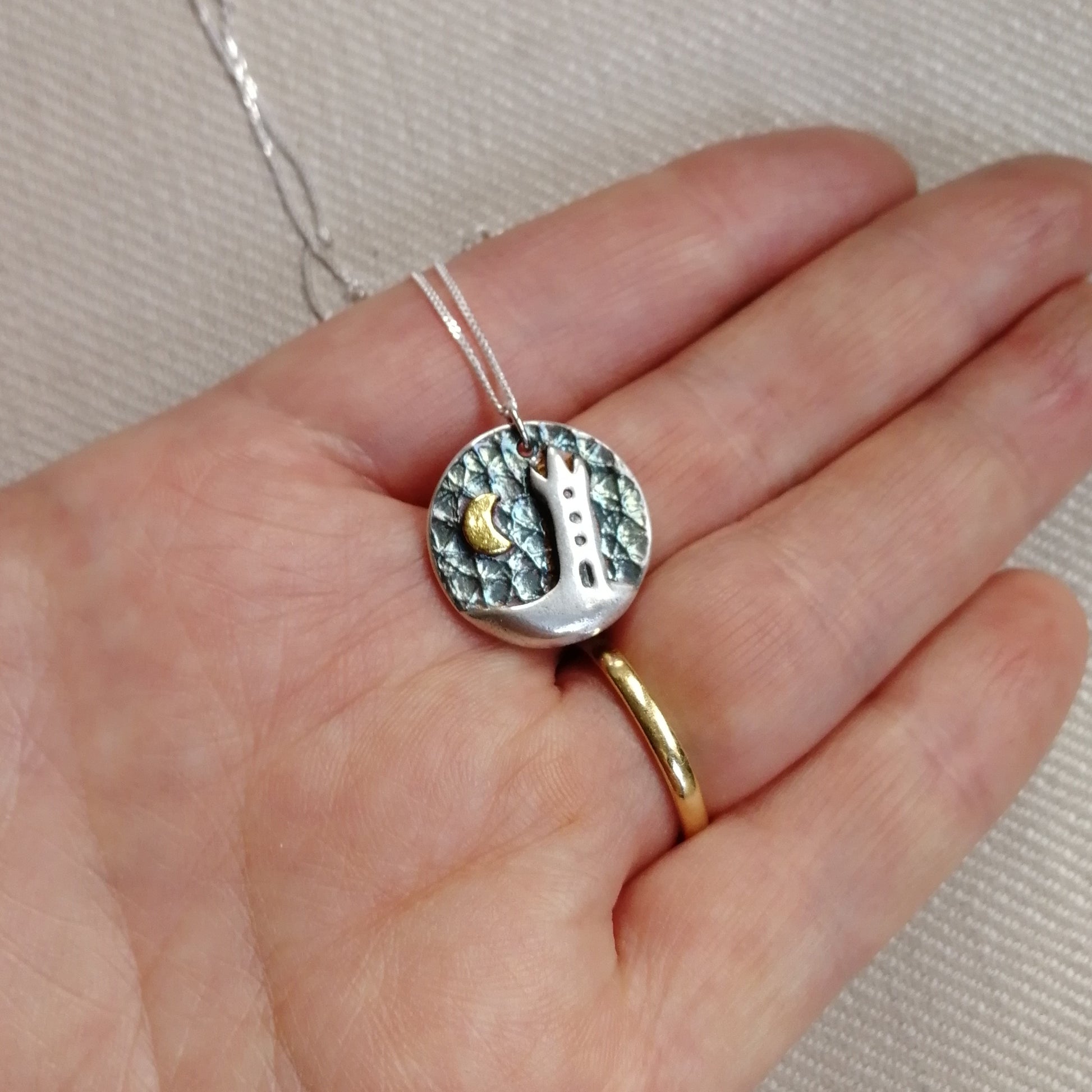 Hand made eco fine silver clay pendant, inspired by Scrabo Tower in Northern Ireland. Built in 1857, it pops in and out of view for miles in the surrounding countryside and coastline - like a beacon that tells locals they are close to home.