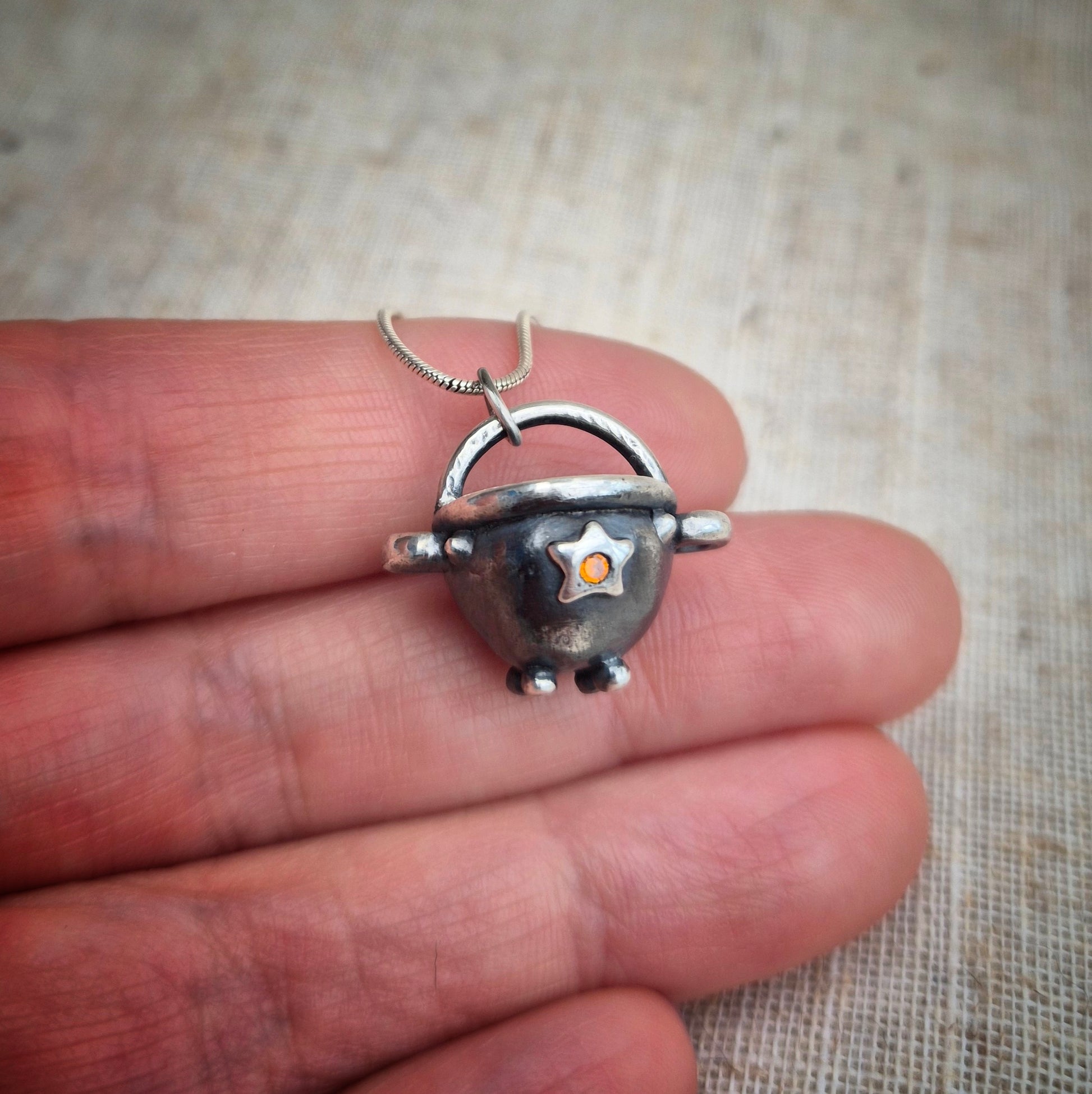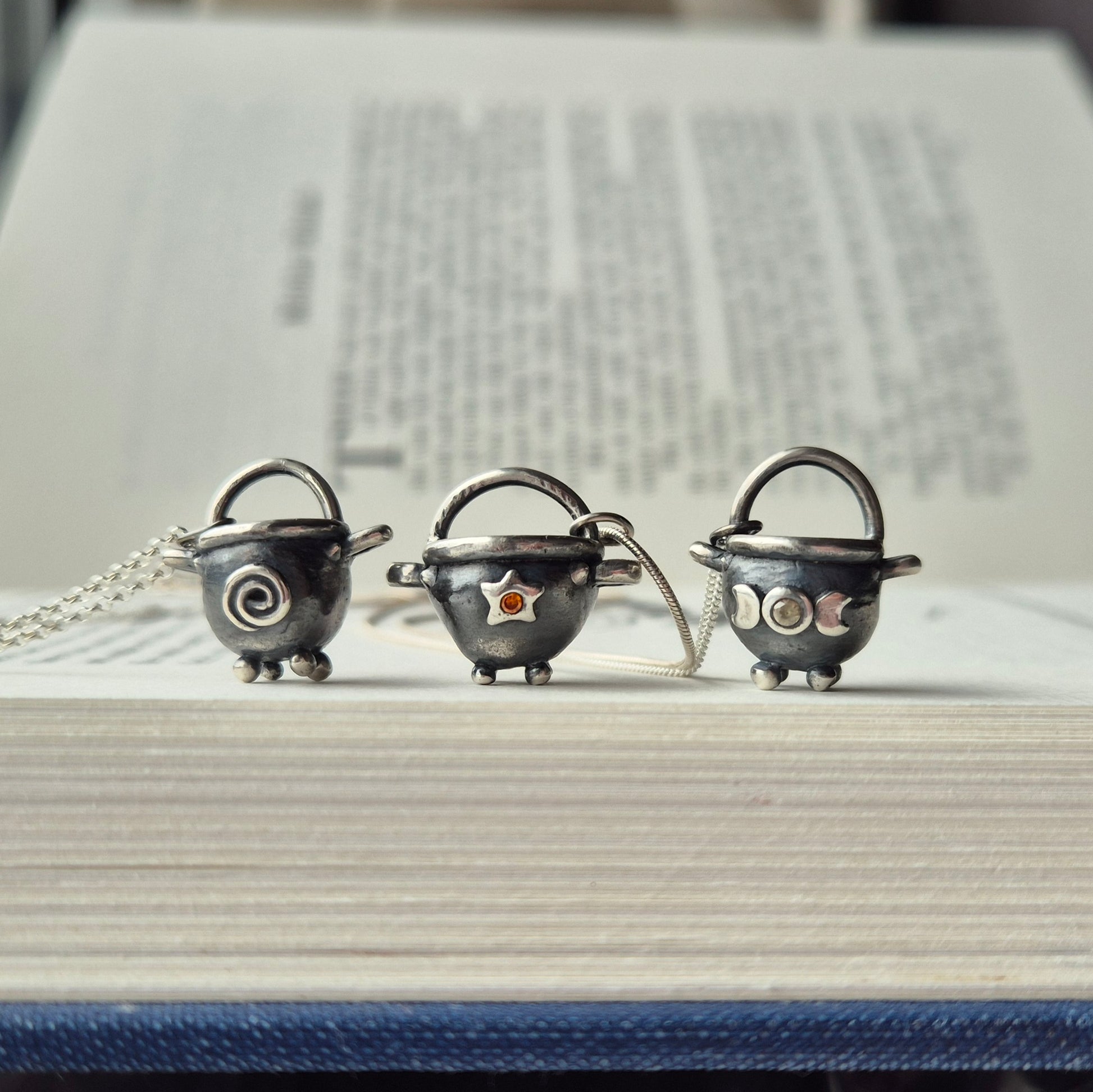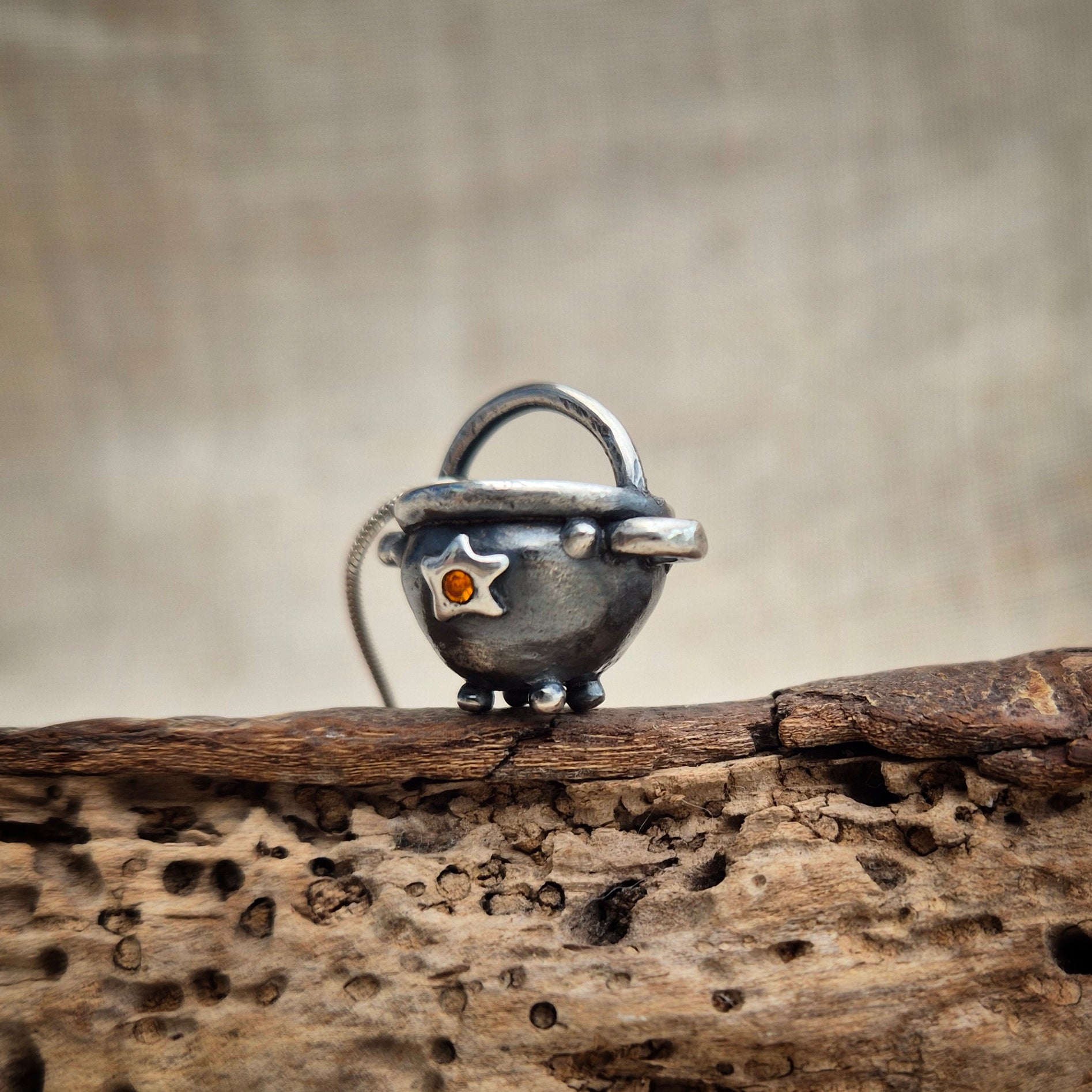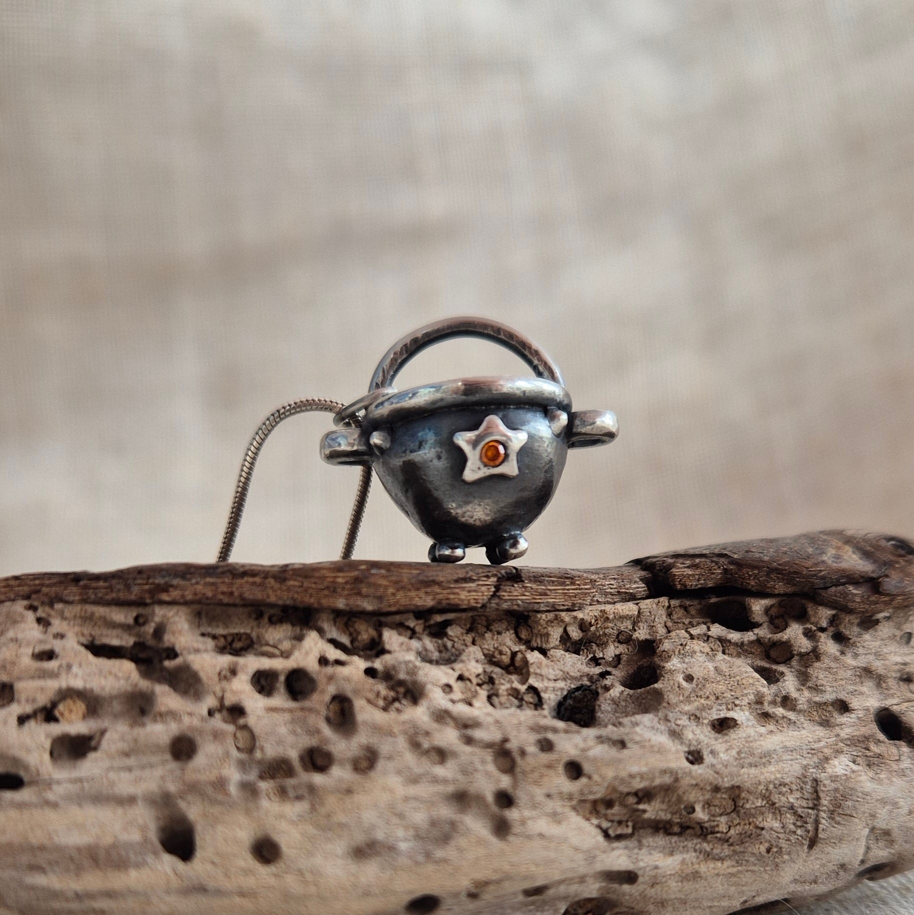 A tiny cauldron, forged by hand in sterling silver, ready to hold a spark of magic.